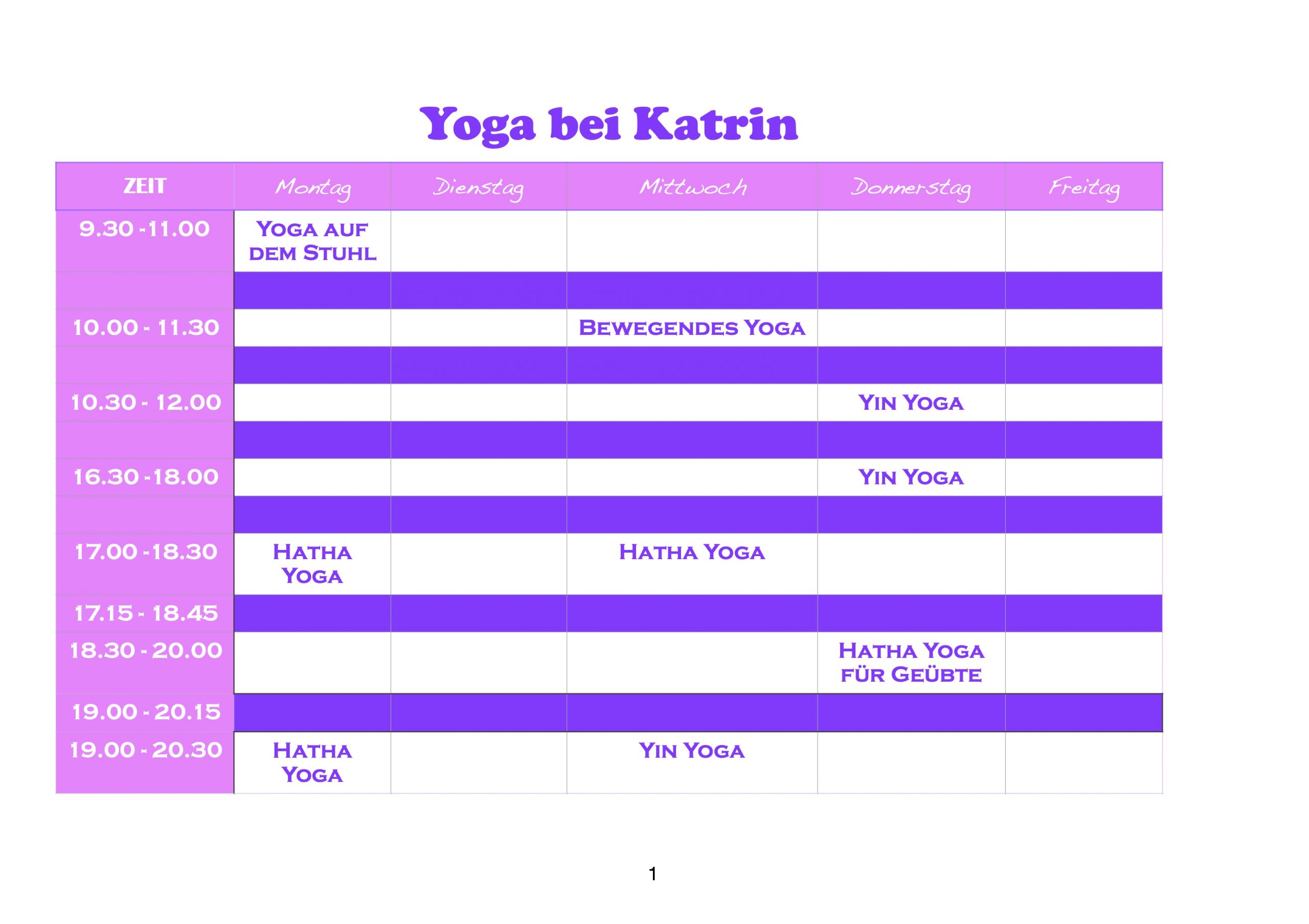 - Erlebe die vielseitigen und abwechslungsreichen Yogastunden bei Yoga bei Katrin. Bei uns steht dein Wohlbefinden an erster Stelle. Tauche ein in die Welt des Yogas und finde zu mehr Ausgeglichenheit und innerer Balance. Buche jetzt deine Einzelstunde und erlebe die positive Wirkung des Yogas auf Körper und Geist.